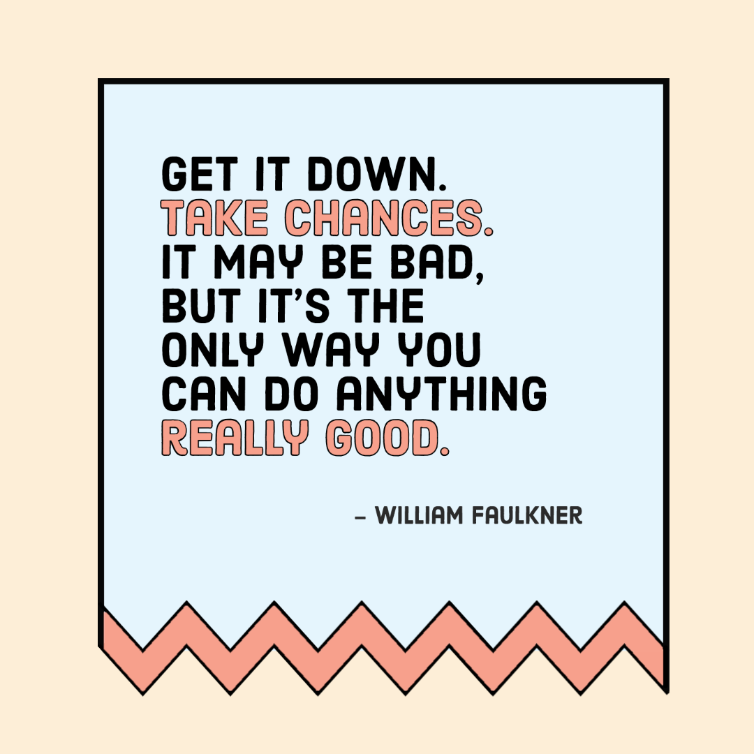 Despite the intimidation of drafting, Faulkner urges us to let the words come out, even in mangled forms. The only words beyond hope of improvement are words that never make it to the page.